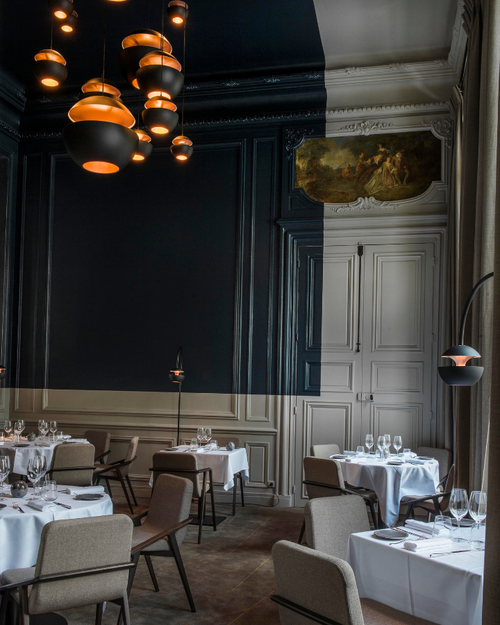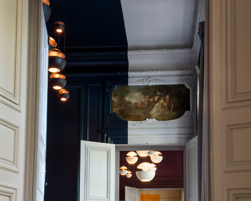 Photo : © Charly HEL Suspensions Here Comes the Sun en grappe & lampe de sol faite sur-mesure