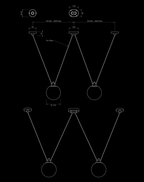 Pendant lamps in cast aluminium and textile cables. Les Acrobates de Gras perform various figures in the air, perched at a height of several metres.