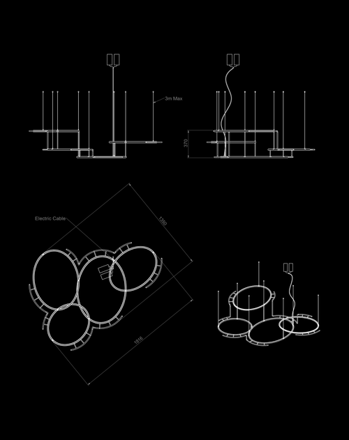 Pendant lamp in natural brass. These light sculptures characterised by their lightness, fluid form and transparency are dedicated to the subtle play of light and shadow. Reflections, shimmers, silhouettes and vibrations dance on the walls.