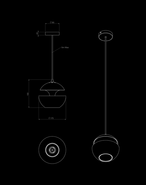 Aluminium pendant lamp. Inspired by the setting sun, it can be arranged alone or in a cluster and is available in several sizes and colours. At first glance, this original lamp looks like all the so-called original lamps. But when turned on, the Here Comes the Sun pendant lamp becomes magical. The night becomes gentle and reassuring.