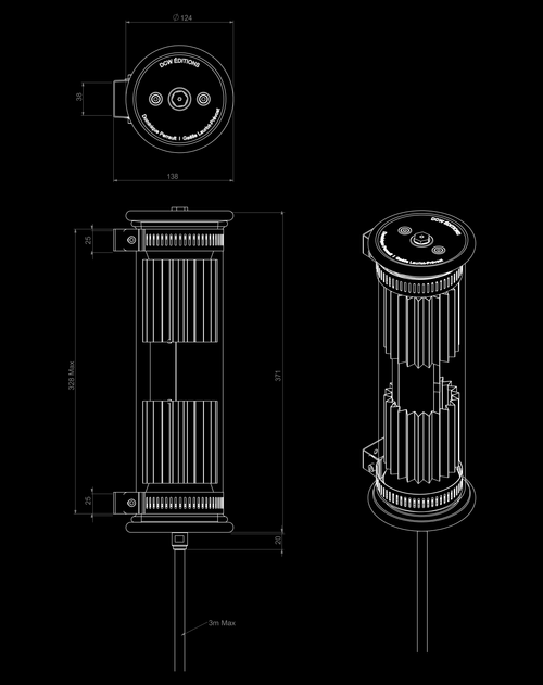 In The Tube wall lamp. In The Tube diffuses a filtered, softened, directed and oriented light via the simple fixed or removable positioning of a shaped filter-mesh or a reflector, whose material gives the colour. Stainless steel for the silver one, anodised aluminium for the copper and gold. The collection evokes spy gadgets à la James Bond, or shuttles à la Jules Verne.