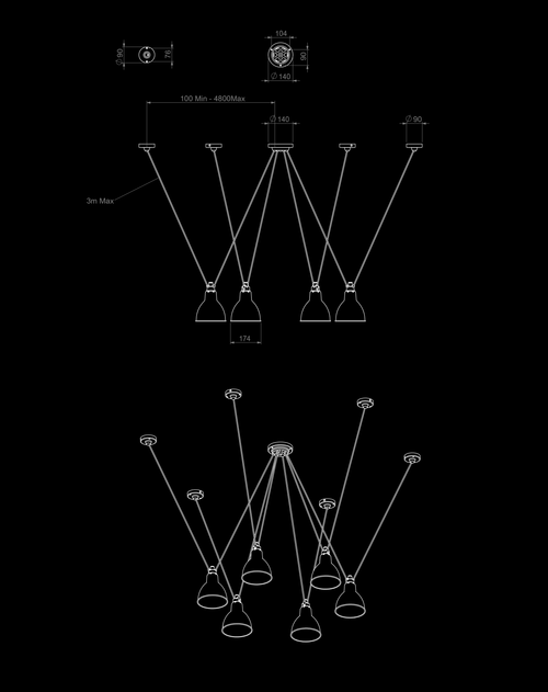 Suspensions en fonte d’aluminium et câbles textile. Les Acrobates de Gras exécutent différentes figures dans les airs, perchés à plusieurs mètres de hauteur. Le spectacle est fort : du mouvement, du rythme et de la couleur. Les couleurs et les formes des réflecteurs de Gras et des boules de verre (tailles L, xL, Ø175 et Ø250) offrent un jeu dynamique et élégant. Les Acrobates de Gras peuvent être reliés entre eux, Chacun peut monter son numéro !
