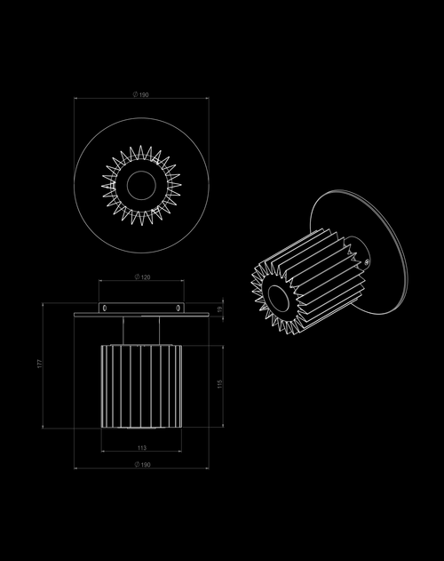173 mm x 190 mm x 190 mm