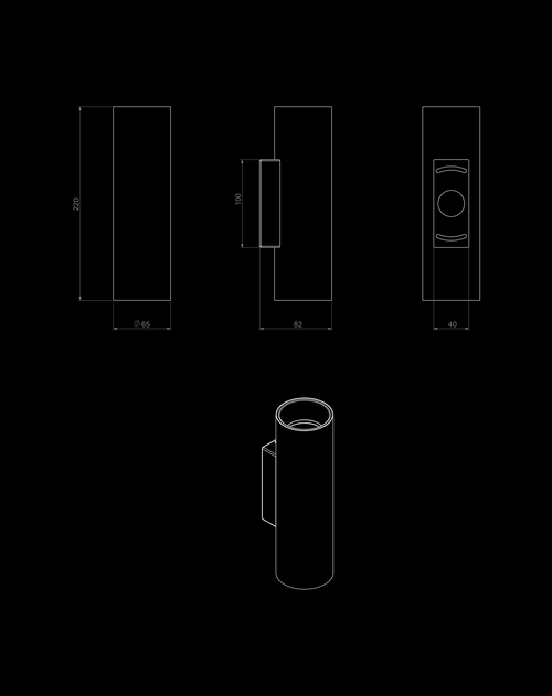 Applique de forme tubulaire en acier finition noir mat. TOBO est une gamme de compléments qui propose à la fois un éclairage technique et une ambiance chaleureuse, presque théatrale.